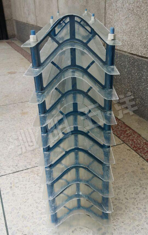 160―45型***低阻加筋弧形收水器,收水器片采用FRP材料擠壓成型或PVC材料擠壓成型,在收水器的片材中增加了進口碳黑作為添加劑,大大提高了片材的抗紫外線和抗老化性能。該收水器具有收水效率高、氣流阻力小、強度高、不變形、安裝維修方便、使用壽命長、阻燃性好等優點。