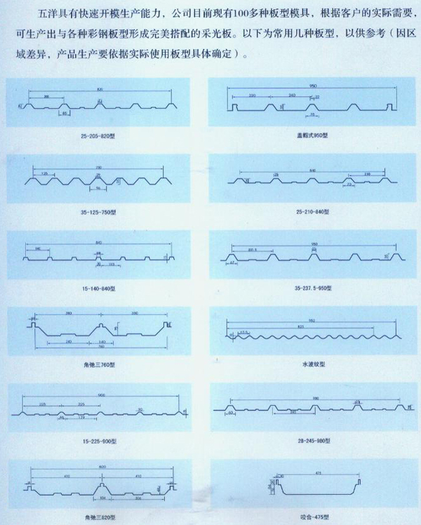 FRP采光板常用斷面